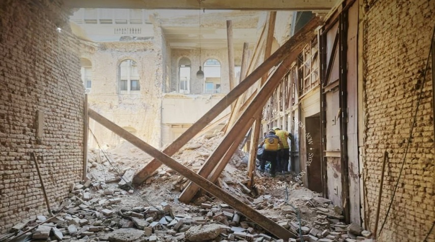 الدفاع المدني: ستة عمال عالقون تحت ركام مبنى وزارة الداخلية القديم في دمشق