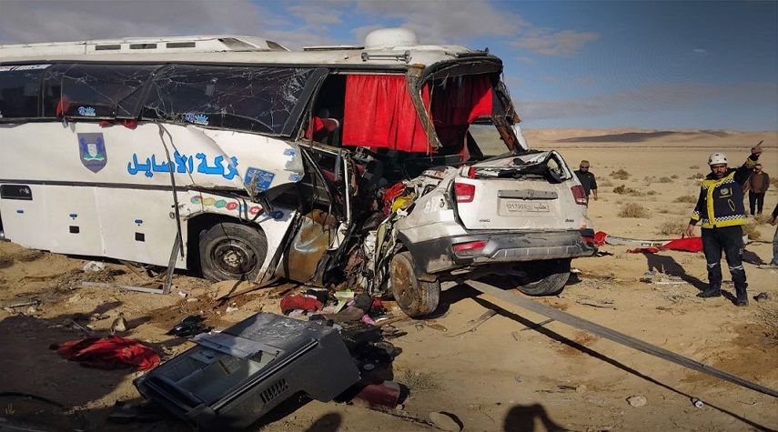 توفي 5 أشخاص وأصيب 6 آخرون اليوم، جراء تصادم سيارة مع حافلة نقل على طريق تدمر – دير الزور قرب بلدة السخنة.